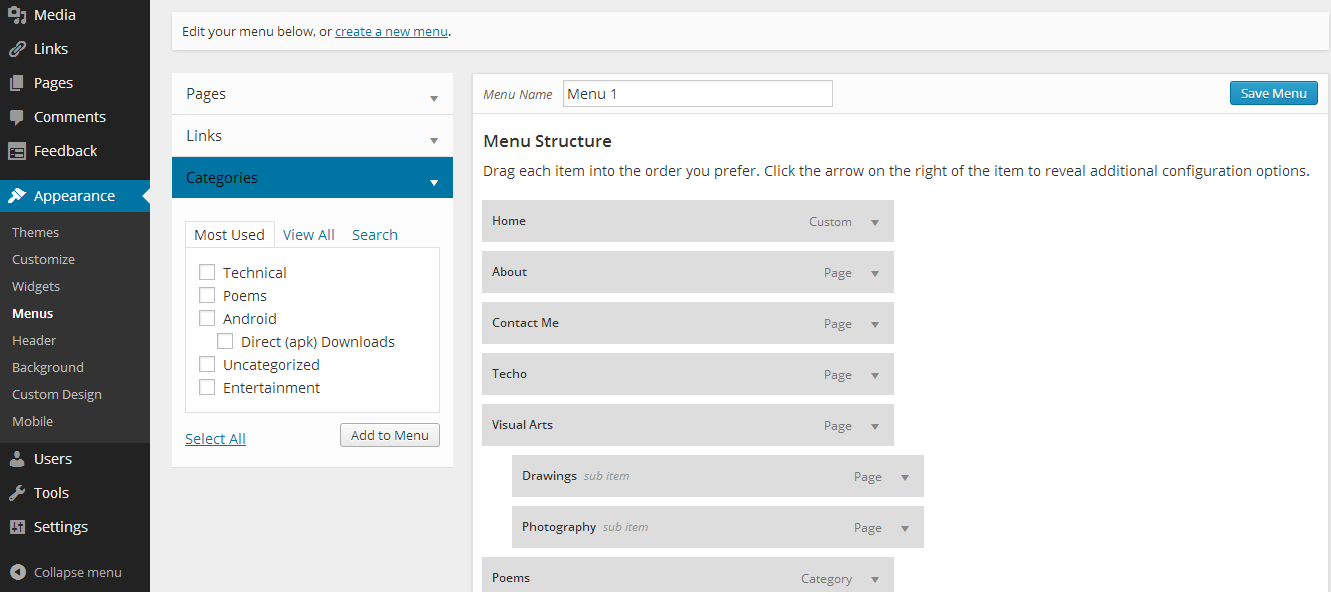 contents as per your convenience. You can make them as a Sub Item as well. Here we have made both the Categories the sub item of Techo.