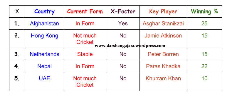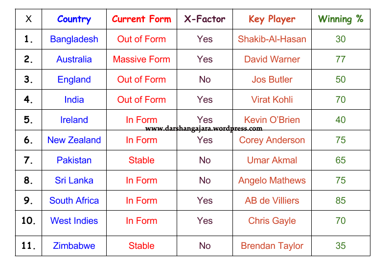 Here’s a list of countries participating in this major Tournament & their probable winning chances based on their Current Form , X-factor & 1 Key Player:
