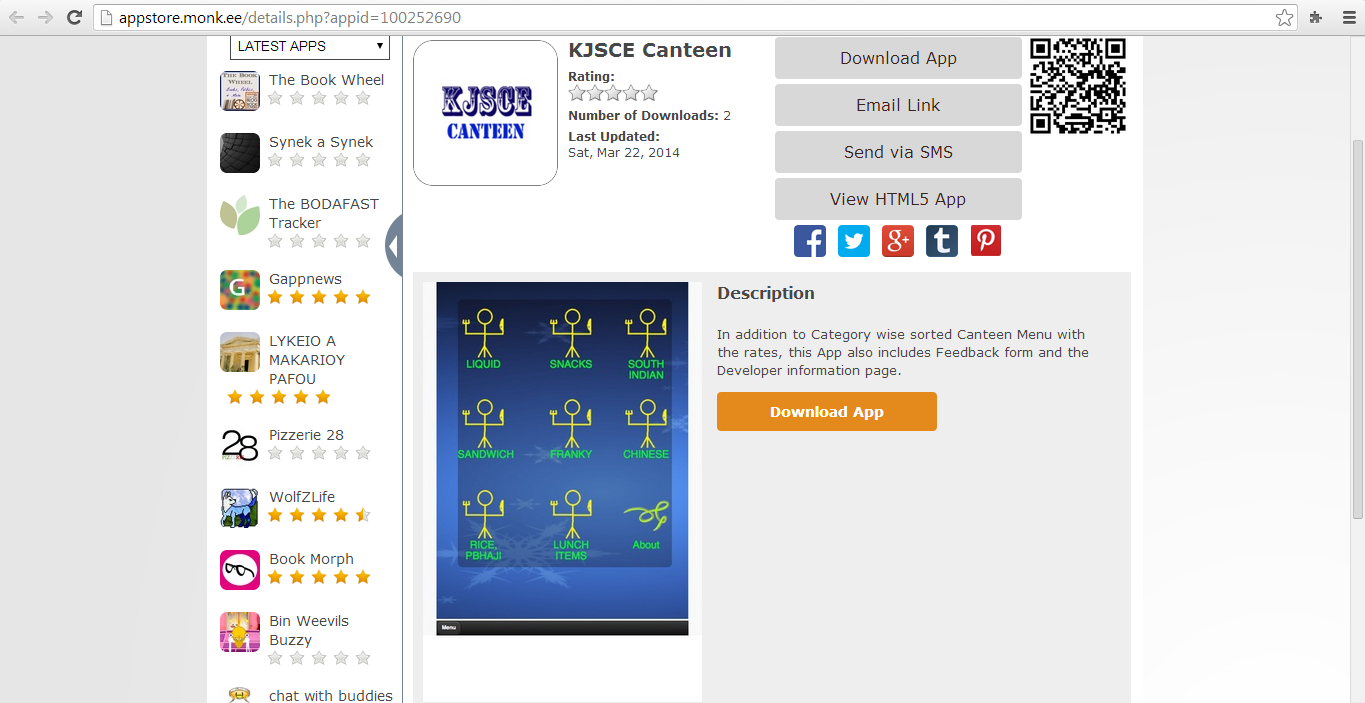 Or visit http://www.fanapp.mobi/kjsce_canteen from any of the Browser which is currently in use on your Device.