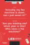Lie #6 Share this:TweetPocket Click to email a link to a friend (Opens in new window) Email Click to share on WhatsApp (Opens in new window) WhatsApp Like Loading...
