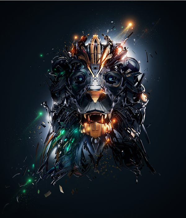 Spizak: I use Photoshop as my hub tool for 2D work, where I do 95% of actual design process – for 3D, Photoshop is where I combine my work & use it to add post production & all sort of effects. Designing in 3D is where I often start these days & it’s primarily ZBrush & Cinema 4D. ZBrush is where I would do most of my modelling & explorations, leaving Cinema 4D for particles & physics based simulations. I also use Cinema 4D for rendering my output.
