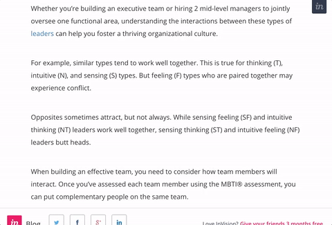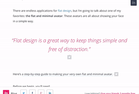 Invision’s blog is another greatly designed space. Invision nicely structured and added pull quotes with tweetable links even before it was made popular by Medium. Medium obviously took this whole thing of tweeting selected content from a blog post to another level by adding auto-generated images, but yeah, Invision was doing this pull quote thing even before Medium existed in the eyes of public. I think most of modern content sites have already realized the power of pull quotes and are efficiently using it now.