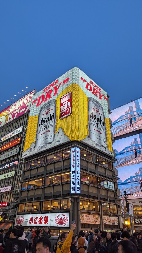 Osaka has big arcades and gambling parlors, a strong anime culture, but we got bored with it pretty quickly. Not our vibe.