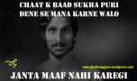 Janta Maaf Nahi Karegi Trolls #2 Bhel Puri Troll Share this:TweetPocket Click to email a link to a friend (Opens in new window) Email Click to share on WhatsApp (Opens in new window) WhatsApp Like Loading...